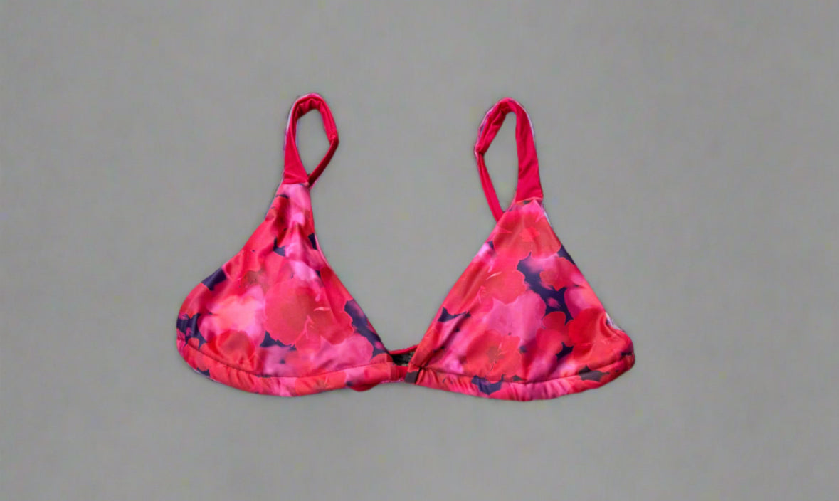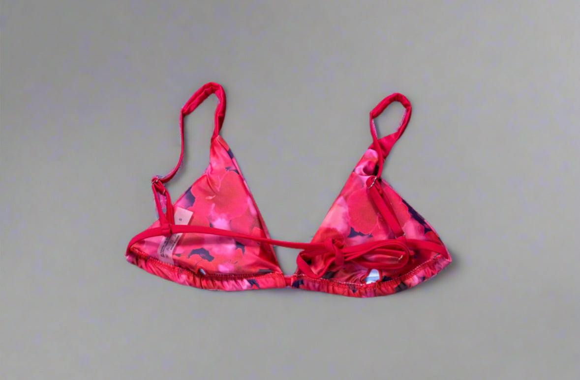 Triangle top with adjustable straps and a flattering ruched tie-side bottom